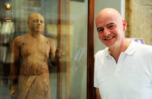 القاهرة “المسلة السياحية” ….. استقبل المتحف المصري بالتحرير چيانى إنفانتينو، (Gianni Infantino) رئيس الاتحاد الدولى لكرة القدم (الفيفا)، في زيارة له للمتحف على هامش تواجده في مصر لحضور نهائي كأس الأمم الإفريقية يوم الجمعة القادم.