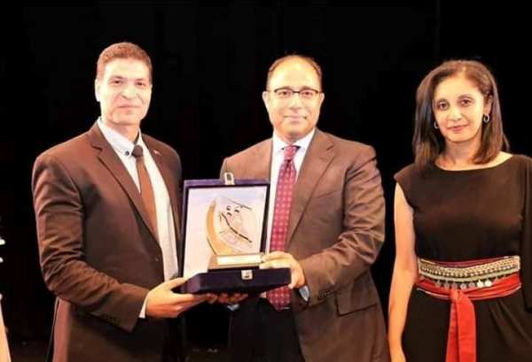 وفي ختام الحفل قدمت الفرقة القومية بقيادة الدكتورمحمود صبرى درع البيت الفني للفنون الشعبية والاستعراضية لسيادة السفير أحمد أبو زيد.