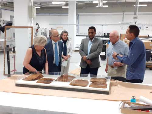 القاهرة “المسلة السياحية” …… استقبل مركز ترميم الاثار بالمتحف المصري الكبير عصر اليوم سفير دولة اليونان الجديد بالقاهرة نيكولاس جاريليدس و حرمه و البروفيسور كريستوس زيريفوس عضو أكاديمية اثينا حيث اصطحبهم د. الطيب عباس مدير عام المتحف المصري الكبير للشؤون الاثرية، في جولة حول معامل الترميم المختلفة بالمركز و خاصة مركز ترميم الأخشاب الذي يعكف فيه المرممين علي ترميم التابوت المذهب الخارجي للملك الشاب توت عنخ امون.