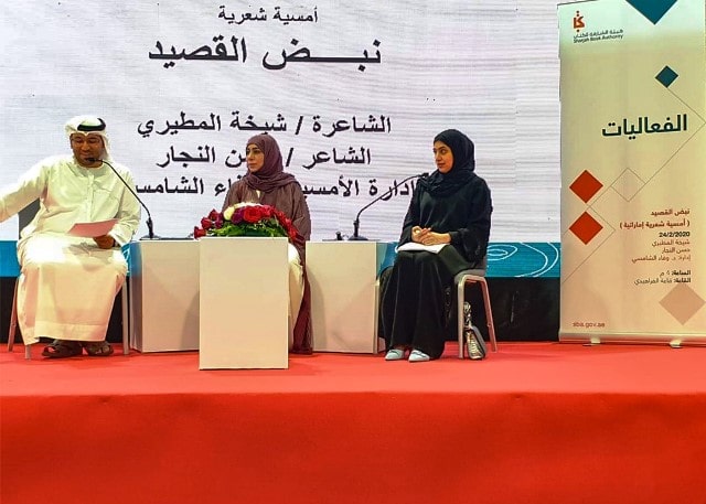 حيث نظمت أمسية شعرية بعنوان “نبض القصيد” أدارتها الدكتورة وفاء الشامسي واستضافت فيها الشاعرة شيخة المطيري ، والشاعر حسن النجار إلى جانب ذلك قدم وفد الهيئة المشارك في المعرض تعريفاً بالخيارات الرائدة التي تتيحها المنطقة الحرّة لمدينة الشارقة للنشر أول مدينة حرّة للنشر في العالم والتسهيلات التي توفرها لدور النشر.