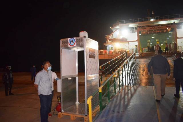سفاجا – حرص محافظ البحر الأحمر اللواء عمرو حنفى، على إستقبال 150 من المصريين العالقين العائدين من السعودية، عبر ميناء ضبا السعودي، عقب وصولهم منذ قليل ميناء سفاجا البحري، وذلك في العاشرة والنصف مساء اليوم الثلاثاء، وذلك في إطار توجيهات القيادة السياسية بمواصلة الجهود لإعادة المواطنين العالقين في الخارج بمختلف المناطق الجغرافية حول العالم.
