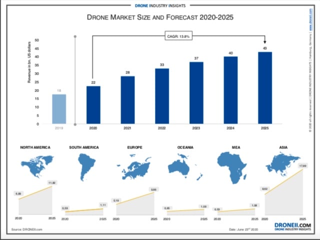 1. The Drone Market will Grow to 42.8 billion USD by 2025
