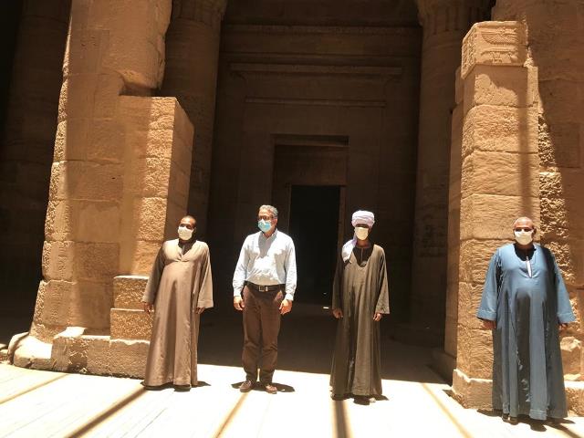 وقد رافقه في هذه الجولة الدكتور مصطفى وزيري الأمين العام للمجلس الأعلى للآثار، و ” عبد المنعم سعيد ” مدير آثار أسوان، تفقدوا خلالها المعبد بالكامل للتأكد من تطبيق كافة ضوابط السلامة الصحية والإجراءات الاحترازية التي اعتمدتها وزارة السياحة والآثار لتطبيقها وإتباعها بالمتاحف والمواقع الاثرية لضمان صحة وسلامة الزائرين وجميع العاملين بها وتوفير سبل الوقاية والحماية لهم.