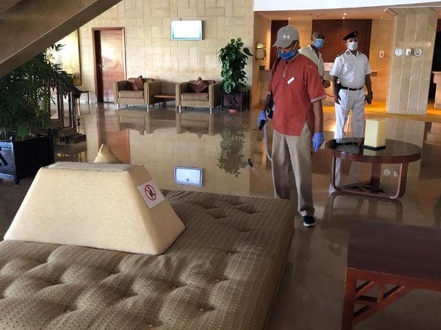 وإجراءات تطهير الأمتعة وقياس درجات حرارة الضيوف وتطهير اليدين.