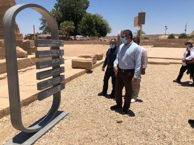 وبحسب بيان صحفي ” تفقد العناني اللافتات واللوحات الإرشادية التي تم وضعها حديثا بالمعبد ضمن أعمال تطوير منطقة معبد فيلة الأثرية.