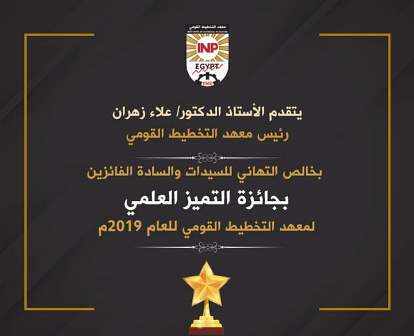– الحمدلله حصلت على جائزة التميز العلمى من معهد التخطيط القومى التابع لوزارة التخطيط.